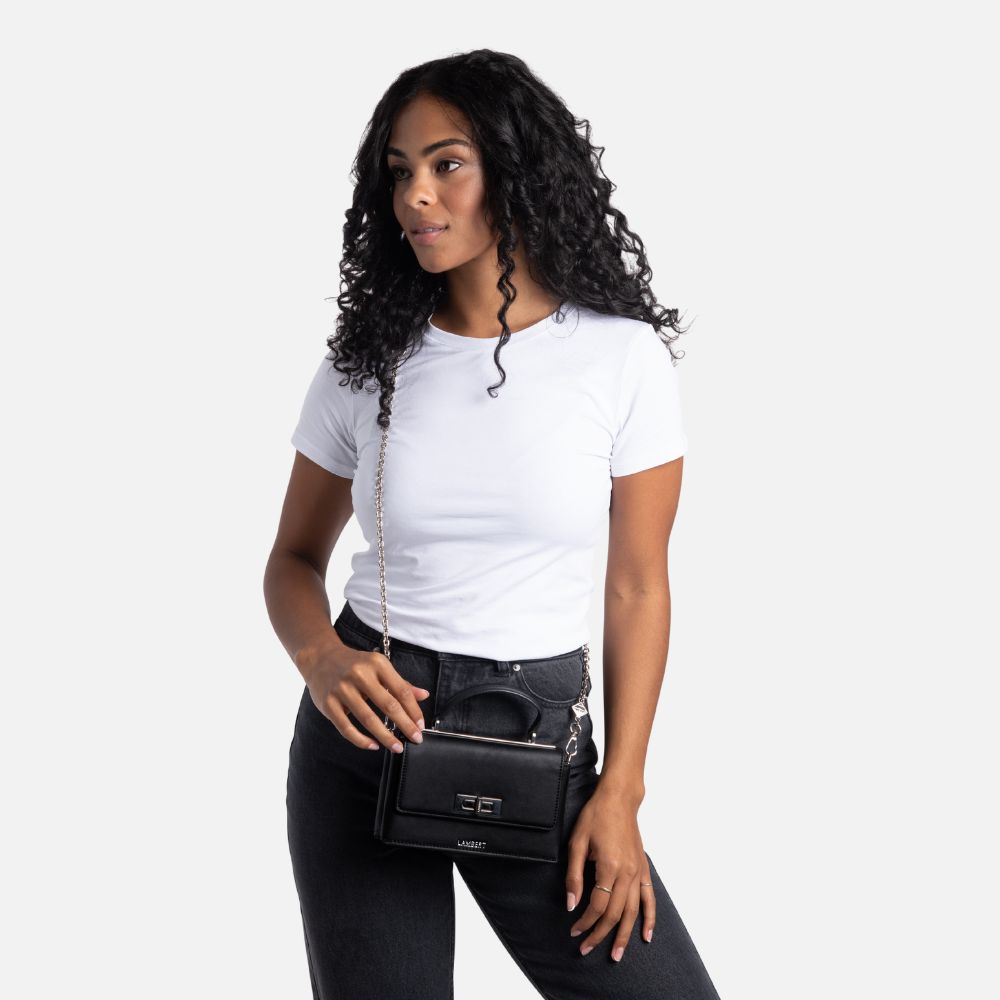 Small and adorable, the Simone 2-in-1 handbag opens to a compact interior, perfect for carrying your essentials. With its sumptuous design, this model will enhance your outfits with elegance. The Simone has an adjustable and removable silver chain strap, allowing you to wear it more than one way!